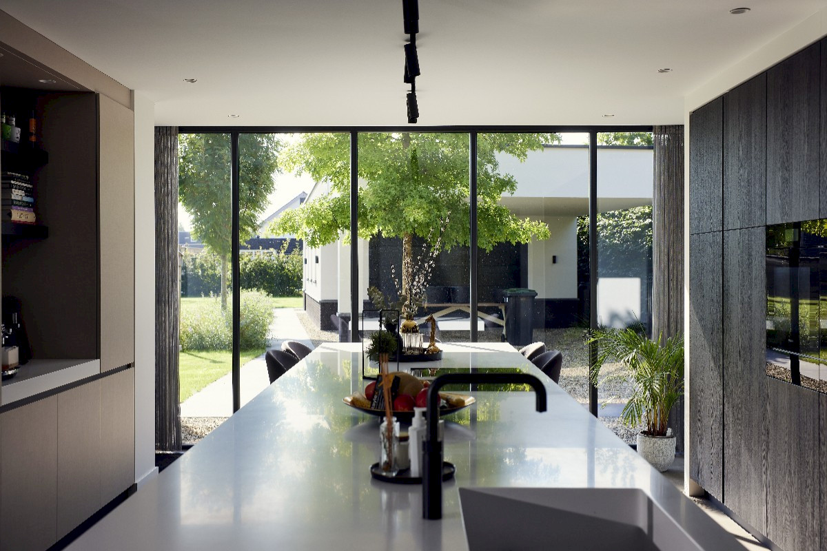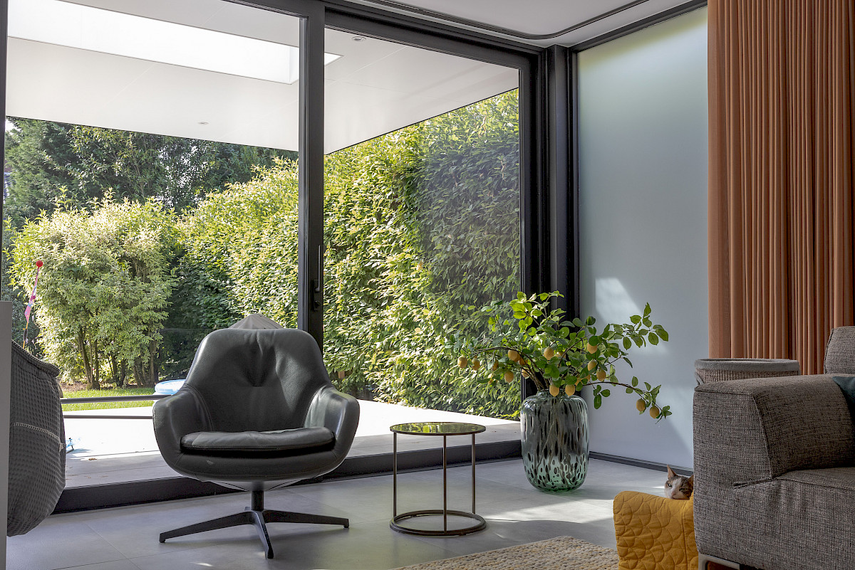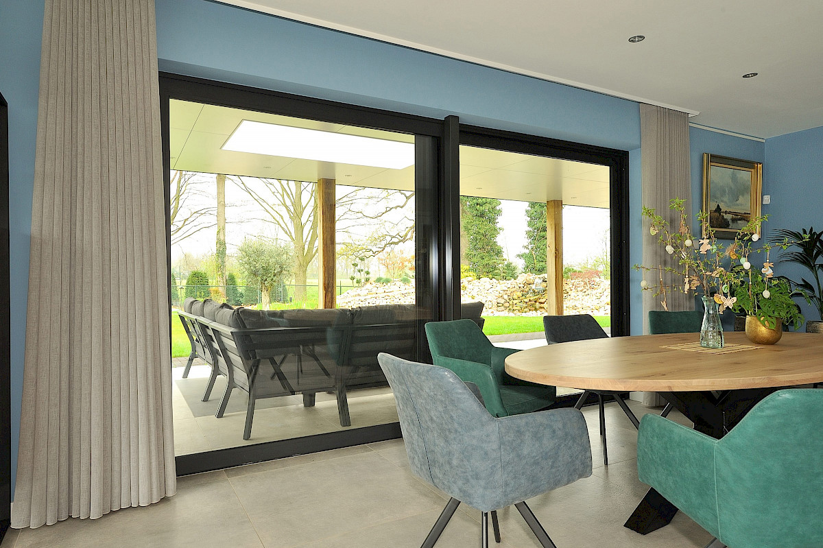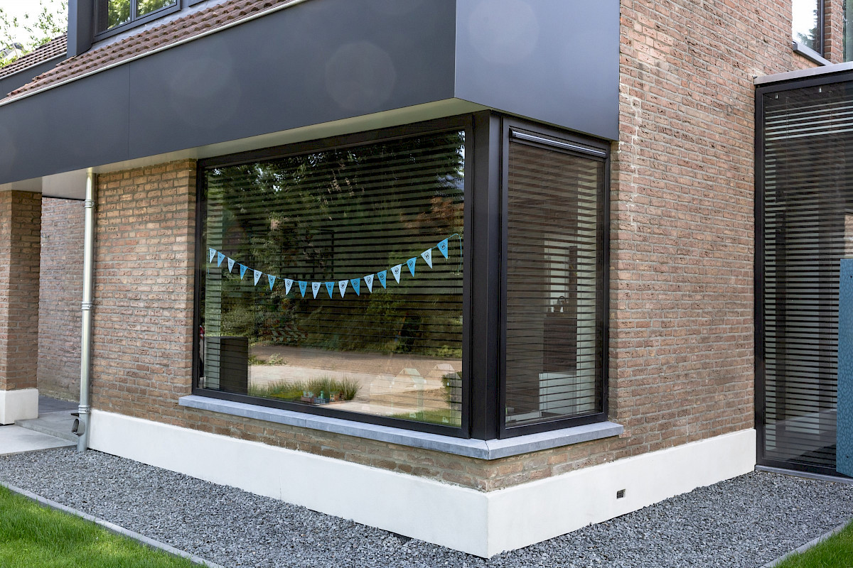 - Strak en slank profiel, aluminium is sterk en vormvast, waardoor grote glaspartijen mogelijk zijn zonder verlies van stevigheid.