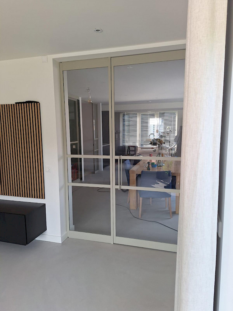 Steellook Interior is een eigen merk van Bouten Kozijn- & Geveltechniek. Onze binnenwanden en deuren hebben de moderne uitstraling van staal, maar bieden het comfort en de voordelen van aluminium. Zo geniet je van uitstekende isolatie, weinig onderhoud en een aantrekkelijke prijs. Dankzij onze slimme, in eigen huis ontwikkelde oplossing kunnen we dit systeem namelijk een stuk voordeliger aanbieden dan traditionele stalen wanden en deuren. Elke deur of wand wordt volledig op maat gemaakt en naar wens ingedeeld. Onze inmeter komt persoonlijk bij je thuis om alles nauwkeurig op te meten. Of je nu meer lichtinval wilt creëren of simpelweg op zoek bent naar een moderne, ruimtelijke uitstraling - steellook interior biedt dé oplossing voor een stijlvol en modern interieur.